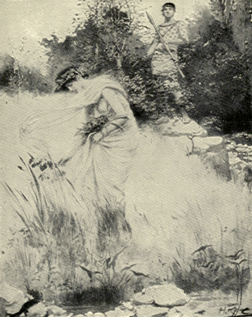 I N Arcadia there is a little mountain stream called Alpheus. It flows through woods and meadows and among the hills for many miles, and then it sinks beneath the rocks. Farther down the valley it rises again, and dancing and sparkling, as if in happy chase of something, it hurries onward towards the plain; but soon it hides itself a second time in underground caverns, making its way through rocky tunnels where the light of day has never been. Then at last it gushes once more from its prison chambers; and, flowing thence with many windings through the fields of Elis, it empties its waters into the sea.