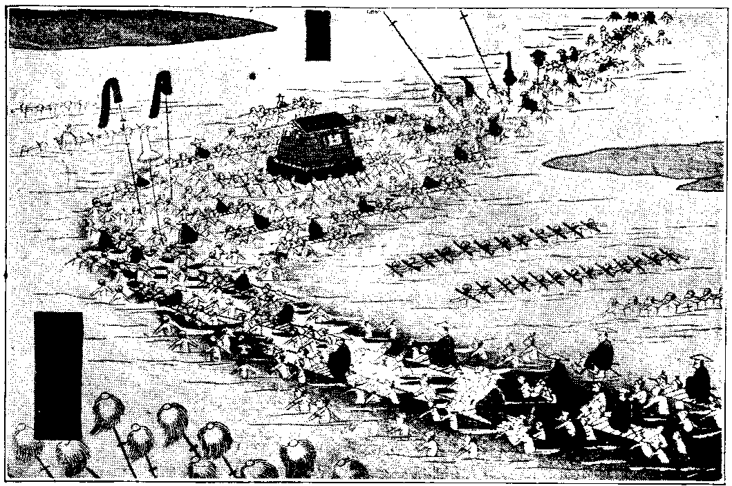 But after the pirates had disappeared and the whole of the island of Hondo had been brought under the rule of the Tennô, the Minamoto and Taira returned to the capital, and when they saw the influence and power of the Fujiwara, they became very jealous. Yet, so great was the respect for the dignity of the Tennô, that neither of the two great military clans, powerful and strong as they were, ventured to oppose the ruling clan. But in the twelfth century something happened that gave the Taira an opportunity to interfere, and swords flew out of their scabbards, and blood flowed, while the country was first made acquainted with the horrors of a civil war.