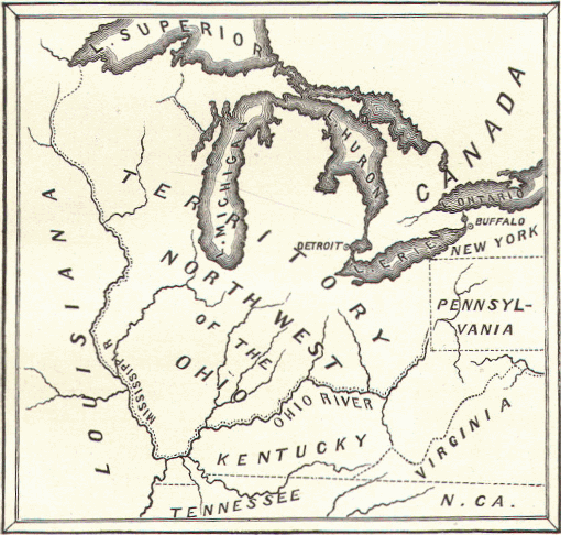 This territory, it must be borne in mind, had, by the ordinance of 1787, been confirmed to the Indians "forever," and its establishment and settlement naturally aroused the jealousy and hostility of the lake tribes. Under the lead of the celebrated Brant, these tribes formed a confederacy, and repudiated the treaties ceding their lands made by some of them, on the ground that they were made without proper authority "by a few of their young men," and insisted on the Ohio River being made the boundary between the Indians and the United States. The British authorities in Canada easily persuaded them to take this attitude, as they were determined to prevent the United States from gaining control of the upper lakes, and the valuable fur-trade of the country around them, then wholly in Canadian hands.