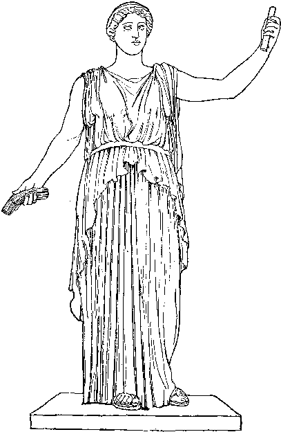 Greece and the GreeksLong ago, when the earth was new and people had not lived long enough upon it to find out how little they really knew about it, there lived in a far-away country a simple and childlike people. The country was a small one, but it was very beautiful, and the people who lived in it loved it dearly. They loved its rugged mountains, green valleys, and swift-flowing streams. It is the little country which we call Greece; but then it was called Hellas. The wide blue sea is on the east, and south, and west of Greece, but on the north there is a great wall of mountains, which separates it from the rest of Europe. The Greeks have told many strange and beautiful stories about their country and its people. They were a strong and active people, and were fond of being out of doors and of all out-of-door amusements. Thus they became famous athletes. They could run swiftly, and could jump, wrestle, and use the bow and arrow with great accuracy and skill. They rode well on horseback, and were very proud of their queer, clumsy chariots, and of their ability to curb their fiery steeds. Their chariots were clumsy because they were very heavy; but the finer ones were as beautiful as the Greeks could make them with carvings, gold, and jewels. They used their chariots in war, and in their chariot races. In war the Greeks were brave, and their heroes were the men who were the best warriors. They loved beautiful colors, fine pictures and statues; and their houses and temples were grander than any we have to-day. They were more skilful than we are in the art of carving statues from ivory and marble. They made statues of their heroes and their gods. It is strange that people who were so wise in many things knew nothing of the great God who made the earth. They thought that there were many gods, and that these gods lived in a beautiful place on the top of Mount Olympus. They thought that their gods were very much like themselves, but were wiser, and far more beautiful. Zeus was the greatest of the gods, and the Greeks believed that they heard his voice in the thunder. His wife, Hera, was pleasant to look upon, yet she had very unpleasant manners, and an unfortunate habit of turning into an animal any one who displeased her. Poseidon lived in a beautiful palace at the bottom of the sea. With his trident he caused mighty tempests, or stilled the angry waves. He was carried from place to place in a shell chariot drawn by fish-horses, which bounded so swiftly over the water that the chariot scarcely touched its waves. Demeter looked after the fields, and brought good harvests to the people. Athena taught them to be wise in many ways. She taught them to do all kinds of hard work; and Helios, the sun-god, drove his golden chariot across the sky every morning. There were many other gods of whom the Greeks asked help, and of whom they told the stories which we shall read.