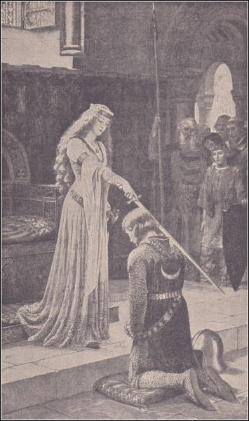 With such a man for their king, the English people became devoted to chivalry, and on every field of battle brave men vied with one another in brave deeds. Knighthood was often the reward of valor. Then, as now, knighthood was usually conferred upon a man by his king or queen. A part of the ceremony consisted in the sovereign's touching the kneeling subject's soldier with the flat of a sword and saying, "Arise, Sir Knight." This was called "the accolade."