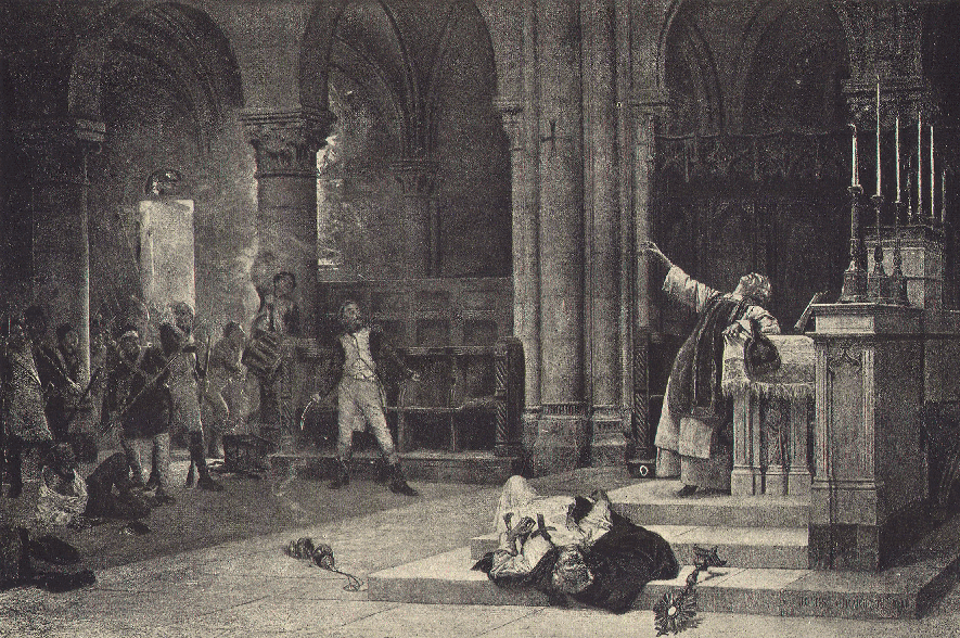 By this time, however, the complaints against the firebrand frightened Philip, and he concluded a treaty of peace, one of whose conditions was that Alberoni should be dismissed. It may be doubted, however, whether Philip would have taken this decisive action but for the urging of his wife, Elizabeth, who could no longer stand the arrogance of her late favorite. In December, 1720, the prime minister was notified that he must leave Madrid within twenty-four hours and Spain within five days. What a striking commentary on human greatness that this man, who had kept all Europe in a turmoil, now did not know whither to turn! He was in that dreadful position of not having a living friend, for every Power hated him, and none more bitterly than the Pope of Rome. Alberoni disguised himself and took a fictitious name, but was arrested in Genoese territory, and on the urgency of the Pope and the Spanish monarch, was imprisoned. He soon recovered his liberty, however, and Innocent XIII. coming to the papacy, all the rights and dignities of a cardinal were restored to Alberoni, who lived to be nearly ninety years old. Philip's dislike of the vexations of royalty became so intense in 1724 that he abdicated in favor of his son, who died a few months later, and, therefore, does not figure among the Kings of Spain, for the father was obliged to reassume the detested crown, which he held until his death, in 1746. He was succeeded by his son, Ferdinand VI., who proved to be a just and humane ruler. His intelligent energy developed the internal welfare of his country, strengthened the navy, and greatly increased the manufactures. His wise political course placed his brother on the throne of Naples. Since his death occurred in 1759, his reign saw the destruction of Lisbon, Lima, and Quito by earthquakes. Charles, the brother of Ferdinand, now came to the throne. He was King of Naples, which he surrendered for the crown of Spain at the death of his brother, Ferdinand. Under him there was a considerable revival of commerce and different industries, and could the regenerating process have been kept up Spain might have won something of her former power and prestige. But Charles was called upon to go the way of all flesh in 1788, and was succeeded by his son of the same name, who was forty years old, and one of the most abominable examples of the Bourbon family that has cursed so many nations and peoples. Manuel de Godoy, Duke of Alcudia, was a handsome youth, who at the age of twenty entered the King's bodyguard at Madrid and became a favorite of the weak King as well as the vicious Queen. She had been the Princess Maria Louisa of Parma. Godoy had honors heaped upon him, and was afterward known as the Duke of Alcudia and the Prince of Peace. In the brief space of four years, he moved up from the rank of a private in the Life Guard to that of prime minister of Spain and Knight of the Order of the Golden Fleece. This wretch became the power behind the throne and the real ruler of Spain. Everybody except the King knew that he was the lover of the Queen, who was shamelessly infatuated with him. In all the trouble that followed, the "poor Prince" was first in her thought, and all her efforts were for his welfare. He was the most unpopular man in the kingdom, and never could have sustained himself for a day but for the shocking passion of his royal mistress, who taught him the art of intrigue, which was the highest of all arts in that wretched country, and showed him how to control the King. There was one person, however, who did not conceal his detestation of Godoy: that was Ferdinand, the eldest son of the King and the heir to the throne. As a consequence, his parents turned against Ferdinand, who was as tricky and fond of double dealing as they. When the Terror came to France, Godoy found himself in a situation to which he was unequal. Naturally the sympathies of the Madrid court were with Louis XVI., for he was a Bourbon sovereign; but if this sympathy took active form, France was likely to pour her armies over the frontier, and then "the deluge" would come. An alliance with that country would encourage Spanish revolutionists and offend England, who would close communication with the Spanish-American provinces. A policy of neutrality was tried. Godoy attempted the role of peacemaker, and offered immense bribes to members of the Convention to vote against taking the life of Louis. When Louis was guillotined, the Spanish court went into mourning and moved several regiments to the northern border. France replied by declaring war against Spain, in March, 1793, whereupon Spain made an alliance with England, whom she hated. But the French arms were victorious, and Godoy gladly made peace, stipulating that the French rulers should be lenient with the children of the dead King and Queen. No attention was paid to this condition, and the treaty was signed at Basle, in July, 1795. It was in recognition of these "splendid services" that Godoy was made Knight of the Golden Fleece, Grandee of Spain of the First Class and Prince of Peace, with an enormous sum of money thrown in to enable him to maintain himself in a style befitting his exalted rank.