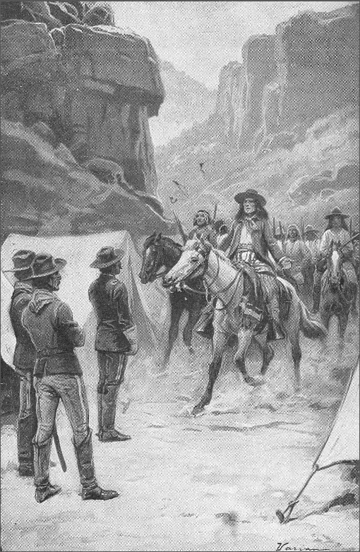 Far off in the Dragoon Mountains where Captain Red Beard took me to see Cochise in his stronghold, lived the chief of a band of Apache Indians, called Geronimo. His Indian name was Go-khlä-yeh, but after his first battle with the Mexicans he was called Geronimo, and the name was pronounced after the Spanish fashion, as if it began with an H instead of a G—Heronimo. When this Indian was a young man he went to Mexico to trade furs and beaded belts and moccasins for things the Indians use, and with him went his wife and many Indian men, women, and children. The Indian men made a camp near a small Mexican city and left the women and children there while they went into the town to trade, but while they were gone some white people fired at those left in camp, and when Geronimo came back all his family were dead, and everything he had was destroyed. At first Geronimo was so sad that he could not eat or sleep, and wandered about in the woods as unhappy as any one could be; then he began to be angry and wanted to fight all white men, and that is how he first made up his mind to go on the war-path.