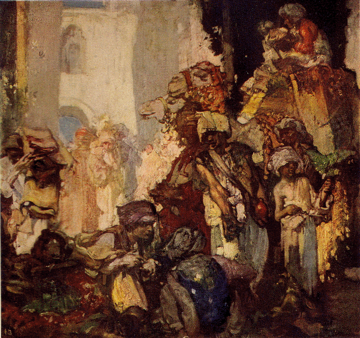 This is the struggle which creates the continual occasion for debate. The vendor, perceiving that the unfolded merchandise has caught the eye of a possible purchaser, commences his opening speech. He covers his bristling broad-cloths and his meagre silks with the golden broidery of Oriental praises, and as he talks, along with the slow and graceful waving of his arms, he lifts his undulating periods, upholds and poises them well, till they have gathered their weight and their strength, and then hurls them bodily forward with grave, momentous swing. The possible purchaser listens to the whole speech with deep and serious attention; but when it is over his turn arrives. He elaborately endeavours to show why he ought not to buy the things at a price twenty times larger than their value. Bystanders attracted to the debate take a part in it as independent members; the vendor is heard in reply, and coming down with his price, furnishes the materials for a new debate. Sometimes, however, the dealer, if he is a very pious Mussulman, and sufficiently rich to hold back his ware, will take a more dignified part, maintaining a kind of judicial gravity, and receiving the applicants who come to his stall as if they were rather suitors than customers. He will quietly hear to the end some long speech that concludes with an offer, and will answer it all with the one monosyllable "Yok," which means distinctly "No."