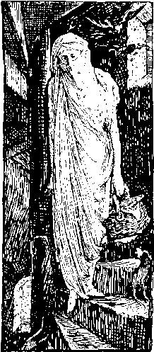 While he was still writing he heard a voice which attracted his attention in spite of himself. Seeing that the waves were rolling in higher than ever, he looked all round him, and presently saw a lovely lady floating gently towards him upon the crest of a huge billow, her long hair spread all about her; in one hand she held a mirror, and in the other a comb, and instead of feet she had a beautiful tail like a fish, with which she swam.