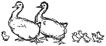 "O Mother, Mother," screamed Kat; "there is the old goose that we haven't seen for so long! She has stolen her nest and hatched out six little geese all her own! They are taking them to the canal to swim." "Quick, Kit, quick!" said Vrouw Vedder. "Don't let them go into the canal! We must drive them home." Kit ran boldly forward in front of them, and Kat ran too. She spilled some of the milk; but she was in such a hurry that she never knew it, until afterwards, when she found some in her wooden shoes!