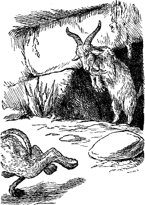 The Lion and the GoatA lion was eating up one after another the animals of a certain country. One day an old goat said, "We must put a stop to this. I have a plan by which he may be sent away from this part of the country." "Pray act up to it at once," said the other animals. The old goat laid himself down in a cave on the roadside, with his flowing beard and long curved horns. The lion on his way to the village saw him, and stopped at the mouth of the cave. "So you have come, after all," said the goat. "What do you mean?" said the lion. "Why, I have long been lying in this cave. I have eaten up one hundred elephants, a hundred tigers, a thousand wolves, and ninety-nine lions. One more lion has been wanting. I have waited long and patiently. Heaven has, after all, been kind to me," said the goat, and shook his horns and his beard, and made a start as if he were about to spring upon the lion. The latter said to himself, "This animal looks like a goat, but it does not talk like one. So it is very likely some wicked spirit in this shape. Prudence often serves us better than valour, so for the present I shall return to the wood," and he turned back. The goat rose up, and, advancing to the mouth of the cave, said, "Will you come back to-morrow?" "Never again," said the lion. "Do you think I shall be able to see you, at least, in the wood to-morrow?"