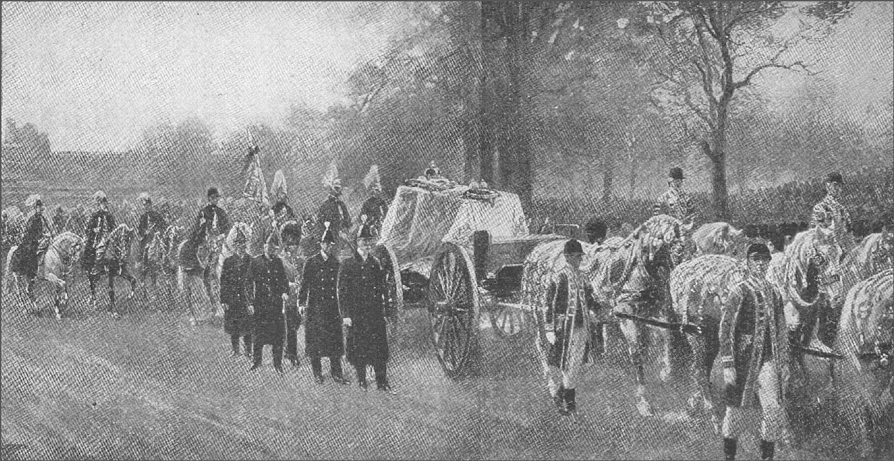 The Passing of the QueenThe opening of the new century found the war in South Africa still dragging wearily on, though the Commander-in-Chief, Lord Roberts, was able to return home, leaving the end to Lord Kitchener of Khartum. The Queen had sorrowed deeply over the war: it had undoubtedly clouded the last years of her life: she had longed for the tidings of peace, but these came too late for her to hear. Vague rumours had reached the outside world that all was not well with the Queen, but nothing definite was known outside the Court circle. She insisted on an interview with Lord Roberts, so that she might hear with her own ears the prospects of peace. To those who saw her ever-increasing weakness, there was cause for alarm in the coming interview on such a critical subject as the war. But the Queen was firm, and she gathered together her sinking energies for this final task. This was early in January. Some days later an alarm was sounded: "The Queen had not been lately in her usual health." Through the length and breadth of her great Empire the news ran, causing widespread anxiety. It was followed by a yet more ominous announcement: "The Queen was suffering from physical prostration." Men recalled her eighty-one years, her strenuous life, her sorrows and anxieties, her ceaseless toil, and shook their heads. On Sunday, January 20th, the tidings grew yet more serious, and few can forget the heavy gloom that settled down over the country. Two days later she passed peacefully away, and the longest reign in the annals of British history was over. Never through the long centuries had monarch been more beloved than was Britain's great Queen, Victoria. "She passed away", said one of her statesmen, "without an enemy in the world, for even those who loved not England loved her." She was mourned with a depth of reality to which few parallels can be found in the history of nations. All jealousies were forgotten; and her personal character, now fully understood in its kindliness, its simplicity, its unshrinking devotion to duty, its purity and goodness, inspired universal respect and genuine affection. From every part of the world came expressions of love and admiration, and the solemn funeral military procession through the heart of the Empire testified to the world-wide sorrow. They laid her, not with the other kings and queens of England in Westminster Abbey, but at Windsor, beside him whom she had loved and who forty years before had been laid there. Little else was spoken of but the Queen's wonderful reign. Her subjects loved to dwell on her high example as wife and mother. They spoke of how simply and naturally she had brought up her children, how she had encouraged their work and play, how she had surrounded them with her great mother love, and how, when the trouble of her life came to her with the death of the Prince Consort, her children were her strength and her comfort. Three of her children had passed on before her. In 1878 the Princess Alice, wife of Prince Louis of Hesse, died of diphtheria, caught from nursing one of her children. Six years later Leopold, Duke of Albany, died, leaving a widow and two young children, while only a few months before her own death she lost her second son, Alfred, Duke of Edinburgh and Saxe-Coburg Gotha. Three grandsons of the Queen died before the dawn of the twentieth century; for the Duke of Clarence, heir after the Prince of Wales to the throne, succumbed to an attack of influenza in 1892, Prince Alfred of Edinburgh died before his father, and Prince Christian Victor died in the South African War. But even private sorrows were never allowed to interfere with affairs of State, which weighed unceasingly upon her, often overwhelming her with work and anxiety.