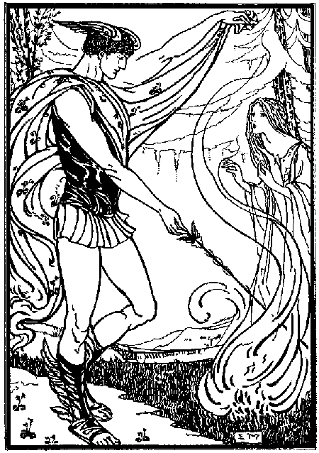 "Make haste, my child, and gather your violets," said March. Dobrunka gathered a large bouquet, thanked the Twelve Months, and joyfully ran home. You can imagine the astonishment of Katinka and the stepmother. The fragrance of the violets filled the whole house. "Where did you find these fine things?" asked Katinka, in a disdainful voice. "Up yonder on the mountain," answered her sister. "It looked like a great blue carpet under the bushes." Katinka put the bouquet in her bosom, and did not even thank the poor child. The next morning the wicked sister, as she sat idling by the stove, took a fancy for some strawberries. "Go to the forest and bring me some strawberries," said she to Dobrunka. "Oh, sister, what an idea! as if there were any strawberries under the snow!" "Hold your tongue, stupid lass, and do as I bid you. If you don't go to the forest and bring me back a basket of strawberries, I will beat you to a jelly." The mother took Dobrunka by the arm, put her out of the door, and drew the bolt on her. The poor girl returned to the forest, looking with all her eyes for the light that she had seen the day before. She was fortunate enough to spy it, and she reached the fire trembling and almost frozen. The Twelve Months were in their places, motionless and silent. "My good sirs," said Dobrunka, "please let me warm myself by your fire; I am almost frozen with cold." "Why have you returned?" asked January. "What are you looking for?" "I am looking for strawberries," answered she. "This is not the season for them," returned January, in his gruff voice; "there are no strawberries under the snow." "I know it," replied Dobrunka sadly; "but my mother and sister will beat me to a jelly if I do not bring them some. My good sirs, please tell me where I can find them." Old January rose, and, turning to a man in a golden mantle, he put his staff in his hand, saying, "Brother June, this is your business." June rose in turn and stirred the fire with the staff, when behold! the flames rose, the snow melted, the earth grew green, the trees were covered with leaves, the birds sang, and the flowers opened—it was summer. Thousand of little white stars enameled the turf, then turned to red strawberries, looking, in their green cups, like rubies set in emeralds. "Make haste, my child, and gather your strawberries," said June. Dobrunka filled her apron, thanked the Twelve Months, and joyfully ran home. You may imagine the astonishment of Katinka and the stepmother. The fragrance of the strawberries filled the whole house. "Where did you find these fine things?" asked Katinka, in a disdainful voice. "Up yonder on the mountain," answered her sister; "there were so many of them that they looked like blood poured on the ground." Katinka and her mother devoured the strawberries without even thanking the poor child. The third day the wicked sister took a fancy for some red apples. The same threats, the same insults, and the same violence followed. Dobrunka ran to the mountain, and was fortunate enough to find the Twelve Months warming themselves, motionless and silent. "You here again, my child?" said old January, making room for her by the fire. Dobrunka told him, with tears, how, if she did not bring home some red apples, her mother and sister would beat her to death. Old January repeated the ceremonies of the day before. "Brother September," said he to a gray-bearded man in a purple mantle, "this is your business." September rose and stirred the fire with the staff, when behold! the flames ascended, the snow melted, and the trees put forth a few yellow leaves, which fell one by one before the wind—it was autumn. The only flowers were a few late pinks, daisies, and immortelles. Dobrunka saw but one thing, an apple tree with its rosy fruit. "Make haste, my child; shake the tree," said September. She shook it, and an apple fell; she shook it again, and a second apple followed. "Make haste, Dobrunka, make haste home!" cried September, in an imperious voice. The good child thanked the Twelve Months, and joyfully ran home. You may imagine the astonishment of Katinka and the stepmother. "Fresh-plucked apples in January! Where did you get these apples?" asked Katinka. "Up yonder on the mountain; there is a tree there that is as red with them as a cherry tree in July." "Why did you bring only two? You ate the rest on the way." "Oh, sister, I did not touch them; I was only permitted to shake the tree twice, and but two apples fell." "Begone, you wretch!" cried Katinka, striking her sister, who ran away crying. The wicked girl tasted one of the apples; she had never eaten anything so delicious in her life, neither had her mother. How they regretted not having any more! "Mother," said Katinka, "give me my fur cloak. I will go to the forest and find the tree, and, whether I am permitted or not, I will shake it so hard that all the apples will be ours." The mother tried to stop her. A spoiled child listens to nothing. Katinka wrapped herself in her fur cloak, drew the hood over her head, and hastened to the forest. Everything was covered with snow; there was not even a footpath. Katinka lost her way, but she pushed on, spurred by pride and covetousness. She spied a light in the distance. She climbed and climbed until she reached the place, and found the Twelve Months each seated on his stone, motionless and silent. Without asking their permission, she approached the fire. "Why have you come here? What do you want? Where are you going?" asked old January gruffly. "What matters it to you, old fool?" answered Katinka. "It is none of your business where I come from or whither I am going." She plunged into the forest. January frowned, and raised his staff above his head. In the twinkling of an eye the sky was overcast, the fire went out, the snow fell, and the wind blew. Katinka could not see the way before her. She lost herself, and vainly tried to retrace her steps. The snow fell and the wind blew. She called her mother, s