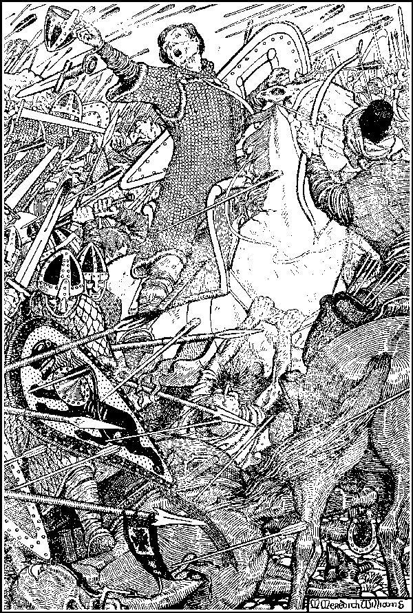 Such was the first pitched battle between the Crescent and the Cross, of which one of the combatants writes: "Had not the Lord been with us, and sent us speedily another army, not one of our men would have escaped." And now the Crusaders were free to pass on to Antioch, though the march thither probably cost them more lives than did that battle of Dorylaeum. The heat of the desert wastes during the month of July left many prostrate by the wayside, never to rise again. Terrible thirst tormented them, and the sight of a welcome stream was the signal for such excesses of drinking that both men and horses died by hundreds. It was almost impossible to obtain food, for the son of Sultan David had marched before the Crusading host, destroying all supplies and leaving the towns upon the track empty and famine-stricken. At length the fertile district of Cilicia was reached, and relief was obtained from these woes. But here arose those unfortunate dissensions which were a lamentable feature both in this and later Crusades. Meantime Tancred and Baldwin with a part of the army had pushed on to Tarsus. This city, the birthplace of St Paul, though held by a small band of Turks, was largely inhabited by Christians, who eagerly claimed Tancred as their protector and lord. Just as the Turks were about to surrender to him, the forces of Baldwin, who had been exploring elsewhere, appeared on the distant heights, and being mistaken by the Turks for their allies, encouraged them to delay giving up the city. The arrival of the new-comer before the walls gave rise to a quarrel with Tancred, the heat of which was only intensified by the discovery that the unscrupulous Baldwin was busy intriguing with the inhabitants with the object of winning their allegiance. In disgust, Tancred, the weaker but more upright of the two, left him to take possession of the city and marched to Messis. But thither, too, the grasping Baldwin followed, and the sight of his tents pitched beneath the walls was the signal for a conflict between the two hosts of Crusaders which reflects little credit on either side. Finally, since reconciliation was impossible, Baldwin gladly accepted an invitation from the famous Armenian city of Edessa to take up its cause against the Turks. The prince adopted him as his son, and was ill rewarded by a rebellion of his people in favour of the new-comer, which soon cost their ruler his life. Thus, while the main army was pressing on to Antioch, Baldwin, married to an Armenian princess, was busy in establishing in Edessa the first Latin kingdom of the East. On October 21st, 1097, the host of the Crusaders at length encamped around the walls of Antioch and made their preparations in anticipation of an early victory. The gates, however, were blocked by huge masses of rock from neighbouring quarries, and it seemed an easier task to break the walls than to force the gates. But both proved to be impossible, even with the aid of a new instrument of war, a huge tower, the outcome of great toil and expense, which, full of troops, was wheeled against one of the gateways. This proved a failure before the showers of Turkish arrows, and was burnt to ashes as it stood. Three months of fruitless effort passed, and the host of the Crusaders began to suffer from lack of food. They dared not venture far to look for it, for the Turks were always on the watch, and no man could with safety leave his post. Finding, moreover, that the Crusaders generally got the worst of it when the Turks made a sally from the city, the native Christians of the country transferred the provisions they had been wont to bring to the former, to those from whom they now believed they would reap the greater advantage in the near future. Then hope began to fail the besiegers, whose camp, owing to the heavy rain, had now become a fever-haunted swamp. One or two of the meaner-spirited leaders tried to get quietly away with their troops; even Peter the Hermit lost heart, and would have deserted the host had he not been forcibly turned back by Tancred. Meantime the Seljukian Turks had been expelled by the Saracens from Jerusalem and Tyre, and the Caliph of the latter now sent envoys to the leaders of the Crusade, of whose evil condition he had been informed, to express his surprise that the Christians, while rightly warring against the fierce Seljuks, should desire to attack Jerusalem also. He promised, moreover, to extend his protection for a whole month to any peaceable pilgrims who should wish to visit the Holy City, on condition that the Crusaders would acknowledge his supremacy in Syria; and he warned them that if they refused his terms his whole power would forthwith be directed against them. The Caliph's envoys expected to find the camp in sorry plight; but, to their surprise, they were entertained in lordly fashion, and found every sign of prosperity and plenty. They were sent back with an absolute refusal to relinquish the right of Christendom over the whole of Palestine, and quite in ignorance of the terrible straits in which the army really stood, in spite of its outward appearance of prosperity. It was true that when the en-my attacked them in the open, the Crusaders were more than able to hold their own; it was the hopeless inaction, the dread of disaffection in the camp, and the pangs of actual famine that were sapping the courage of the besiegers; and now the news that an immense army, led by the Sultan of Persia, was coming to the relief of the city was the last and most crushing blow. At this crisis, Bohemond, whose movements had for some time been full of mystery, assembled the leaders and asked for a solemn oath from them that the man who succeeded in taking the city should be its future ruler. Very unwillingly they gave their consent, upon which Bohemond revealed the fact that he had for some time past been in communication with an officer of the city guard, who was in the full confidence of the governor, and could obtain possession o