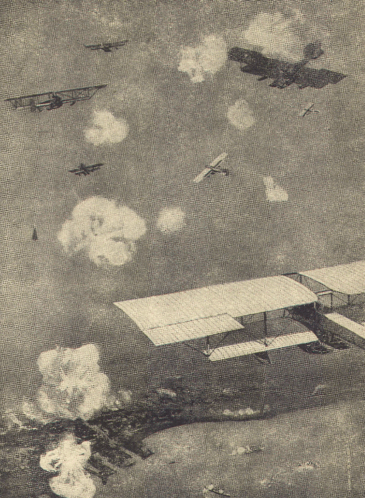 Some Fine British RaidsIt is an undisputed fact that the British Flying Services have carried out some of the largest raids in the course of the war, and there have been so many of them that it is impossible to describe every one here. It is worth remembering that these raids differed from those undertaken by the Germans when their airships visited Britain: our raids are always against places of military importance, whereas the world knows the object of German frightfulness. Quite early in the conflict our airmen, in twos and threes—and sometimes more—went on long-distance flights, to attack some important point behind the German lines, as, for instance, when Squadron-Commander Spenser Grey, and Lieutenants S. V. Sippe and Marix, of the R.N.A.S., on October 8th, 1914, sailed over the airship shed at Dusseldorf, dropped bombs which hit their mark and set fire to the shed and the Zeppelin inside, as they plainly saw by the tall pillar of smoke and flame which arose immediately after the bombs struck. Then, on November 21st of the same year, there was a daring aerial attack on the Zeppelin works at Friedrichshafen, on the shores of Lake Constance, where Count Zeppelin built the giant gasbags which were to be used on murder raids. The flying men who took part in the attack on the works were Squadron-Commander E. F. Briggs, Flight-Commander J. E. Babbington, and Flight-Lieutenant S. V. Sippe, who set out from an aerodrome in the neighbourhood of Belfort, their Avro machines, driven by 80-horse-power Gnomes, humming their way up until they were but mere specks in the sky. The course taken lay to the north of the frontier of Switzerland, and Friedrichshafen was sighted about midday. The success with which the airmen steered toward their objective made the Germans realize that British aviators were not to be despised as the "contemptible little army" had been; and yet, rather than admit this, the enemy avowed that the raid had only been possible by reason of the fact that our diplomats in Switzerland had improperly given information which had assisted the aviators; which was another German lie that needed no refutation. What had happened was that the Britons had studied the problem and had made themselves masters of the route they were going to take, with the result that they surprised the Germans at Friedrichshafen, who had never expected such an attack from the air. One of the airmen got lost temporarily in a bank of cloud, but Commander Briggs and his other companion dropped to the attack in a giddy volplane. Coming directly over the works they loosed their bombs, and the crash of the explosions mingled with the roar of firing guns, the sharp bark of rifles and the tat-tat-tat of machine-guns—all of which the Germans turned upon the daring aviators, who swept round in wide circles, their planes riddled by the bullets. When the third airman emerged from the cloud-bank he saw that his commander was in trouble: his machine was dropping. An unlucky bullet had pierced the petrol tank, the engine petered out, and the gallant pilot knew that he would have to descend. He kept his head, however, and maintained control over his mount until he had brought it to a graceful landing near the devastated works. A crowd of Germans immediately surrounded him, and their appearance was so threatening that the Commander drew his revolver, thus keeping at bay the angry foe, who did not know that the revolver was empty! In due course a German officer came up and Commander Briggs surrendered, not a little mortified that his successful attack should have come to such an inglorious end. Meanwhile, his two comrades were hurrying home, for the necessities of war decreed that they must leave the Commander to the mercy of the enemy. "If they had come unperceived," wrote one who described this affair at the time, "they were not to leave the country without risk. The news of their presence was telegraphed from town to town; motor-cars mounting machine-guns and anti-aircraft cannon were dispatched at full speed to the most likely points; observers were specially detailed to watch the Swiss border and to note whether these adventurers crossed the frontier. But such was the extraordinary speed with which the airmen returned, that scarcely had the news of their arrival been received than the airmen themselves were over the place to which communication had been made and were out of sight before any effective step could be taken to intercept them." When the airmen reached the flying ground near Belfort they received a hearty and enthusiastic welcome, and later they were decorated with the Legion of Honour. Cuxhaven, the German war port situate at the mouth of the river Elbe and protected to seaward by the great fortress of Heligoland, had its first experience of modern war on the morning of Christmas Day 1914, when a number of British seaplanes appeared out of the mist and dropped bombs upon its ship-building yards and fortifications. This raid, the first that the Royal Naval Air Service had undertaken from the sea, was extremely well planned. There were seven seaplanes, which were borne out to sea by two new seaplane carriers, one an erstwhile cross-Channel steamer which had been converted into an auxiliary war-vessel. These two ships were escorted by several submarines, two destroyer flotillas, and the new light cruiser Arethusa, which, before she met with her untimely end in 1916, was to add to the many laurels gained by the long list of 'saucy Arethusas' in the annals of the British Navy. While on their mother-ships the seaplanes, which were Short tractors, had their wings folded up; when the appointed rendezvous was reached, the machines were lowered over the side into the water, their planes were opened, their engines began to roar, and having driven through the water the distance required to get up sufficient speed to allow of rising, up through the mist they soared, droning on their way to their objective. The seven