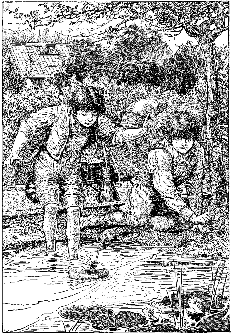 "Look! yonder is an old wooden shoe sailing along," said one of the girls.