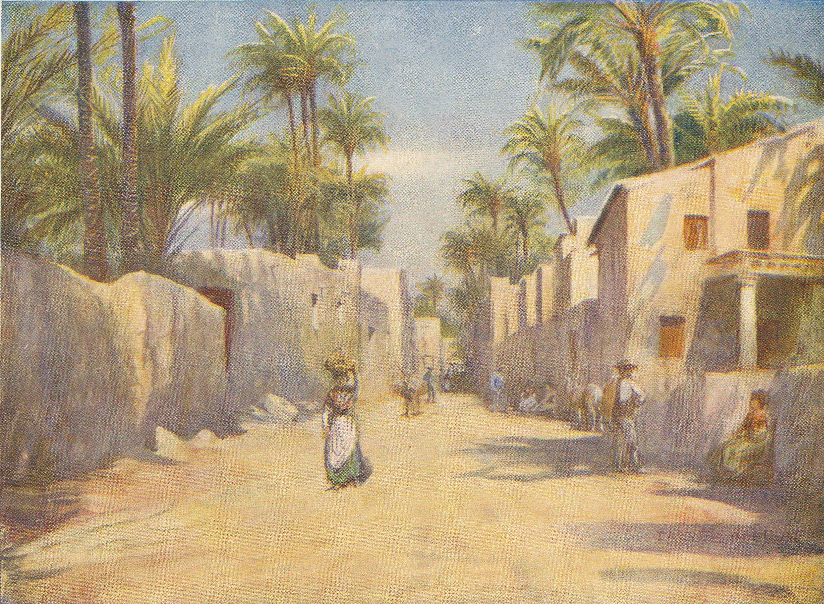 The Eastern and South-Eastern regions form the paradise of the naranjales—or orange-grounds—and of the lemon-groves. The orange-trees constitute one of the most picturesque sights in the whole country. To walk among the naranjales in March, when they are in full bloom, is to wander among bowers or shining green leaves and fragrant white blossoms, in a perfumed dreamland of wondrous beauty. It is impossible to feel you are on earth amidst such surroundings; all your worldly senses are drugged, through your sense of smell, by the potent accumulation of a delicate fragrance, and you are magically wafted through the charmed air into the realms of romance.