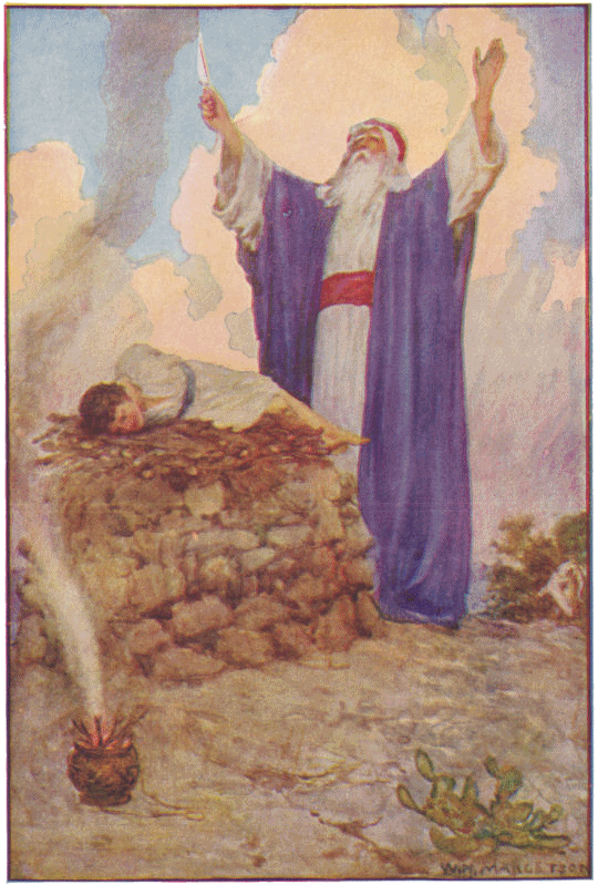 But the people who worshipped idols often did what seems to us very strange and very terrible. They thought that it would please their gods, if they would offer as a sacrifice the most precious living things that were their own: and they would take their own little children and kill them upon their altars as offerings to the gods of wood and stone, that were no real gods, but only images.