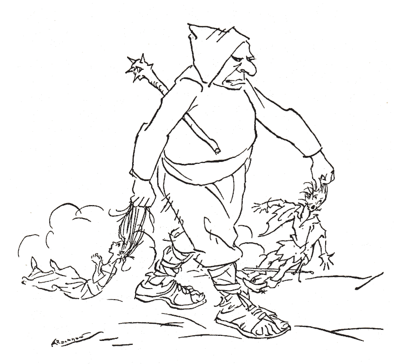 The giant cried out again: "Art thou that villain who killed my kinsmen? Then I will tear thee with my teeth, suck thy blood, and grind thy bones to powder."